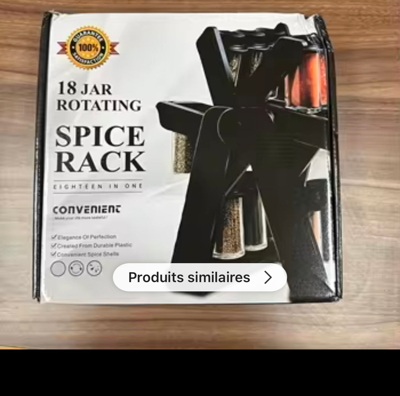 1 ensemble étagère à épices avec 18 pots à épices, rotative à 360°