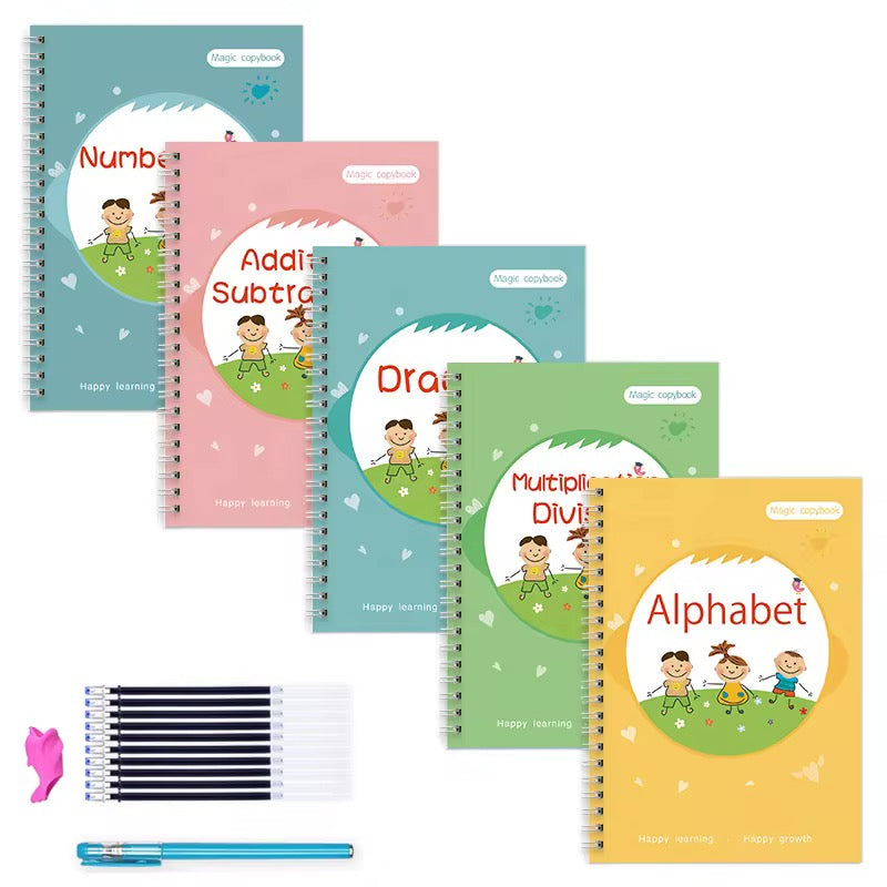 Offrez à votre enfant une manière amusante d’apprendre à écrire et à compter grâce à ce lot de *5 cahiers magiques* !