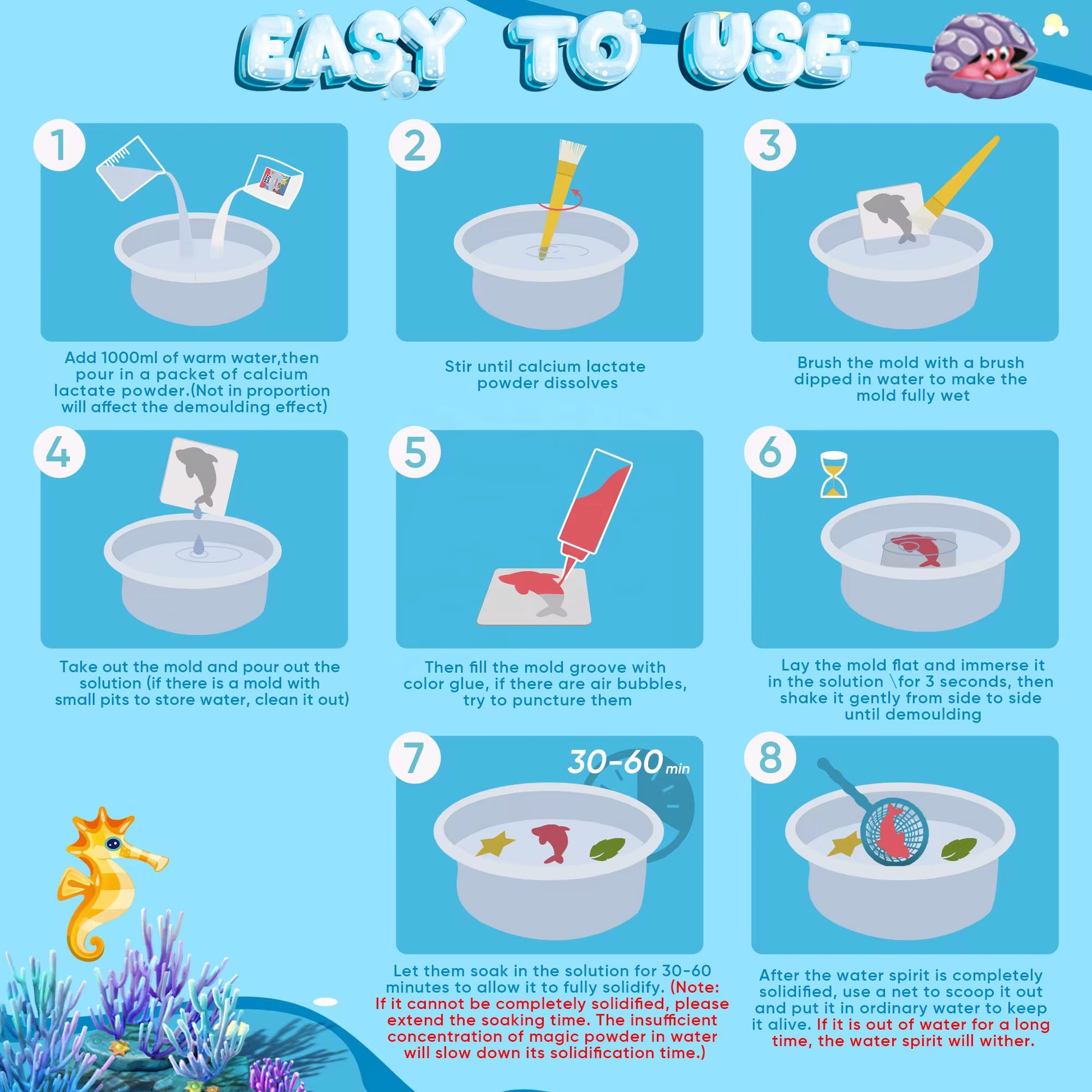 - Facile à utiliser: notre kit de perles d'animaux d'eau peut garder les enfants frais. Il suffit de verser le gel dans un moule, puis de le laisser tomber dans l'eau. De cette façon, vous pouvez créer de jolies figurines d'action colorées.
