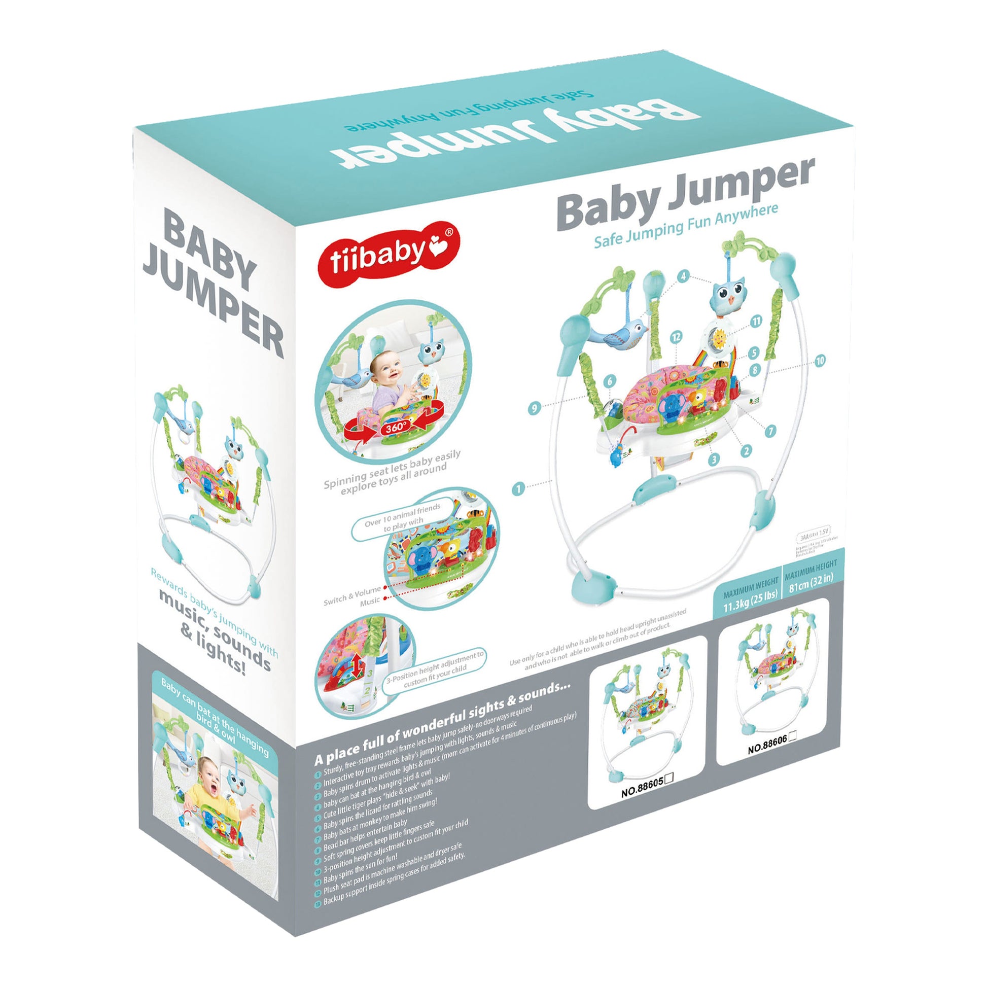 🔄 Siège rotatif à 360° : Permet à bébé d’explorer tous les jouets autour de lui sans se déplacer.