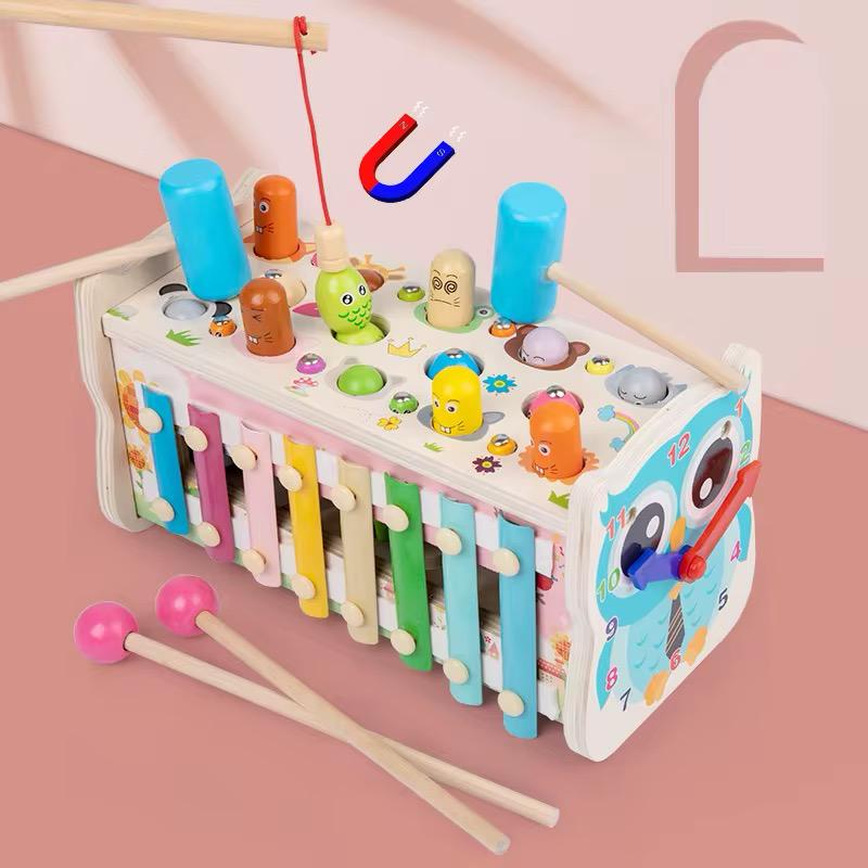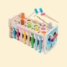 Stimulez la motricité et l’éveil de votre enfant avec ce superbe jouet en bois multicolore ! Ce banc à marteler combine plusieurs activités ludiques : taper sur les taupes, manipuler des engrenages, découvrir des couleurs et des formes, le tout dans un univers amusant décoré d’animaux.