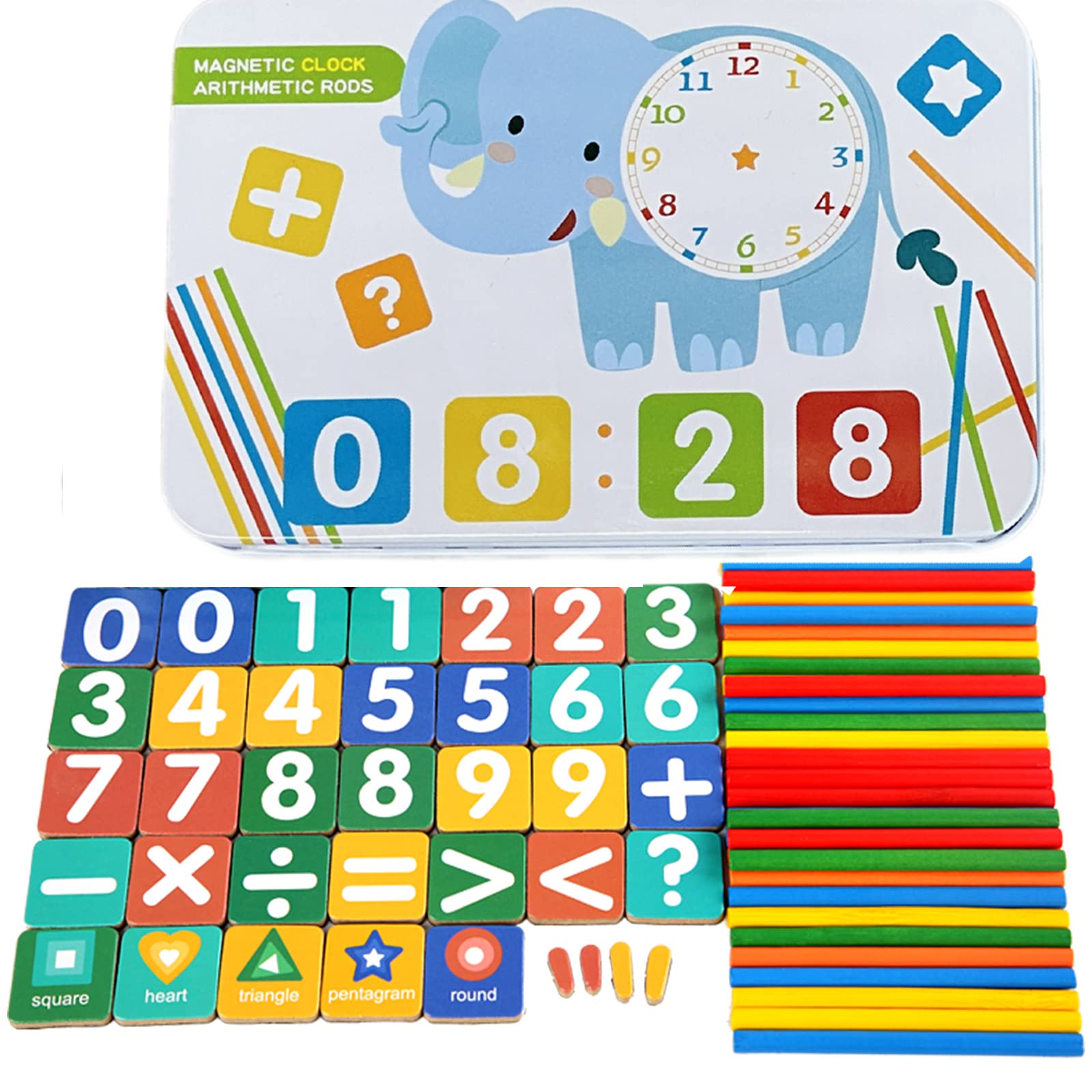 Jeu Éducatif Multifonction – Horloge Magnétique & Bâtonnets de Calcul – Apprentissage des Chiffres, Formes et Couleurs