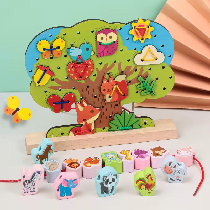 jeux d'eveil- arbre a lacer et animaux