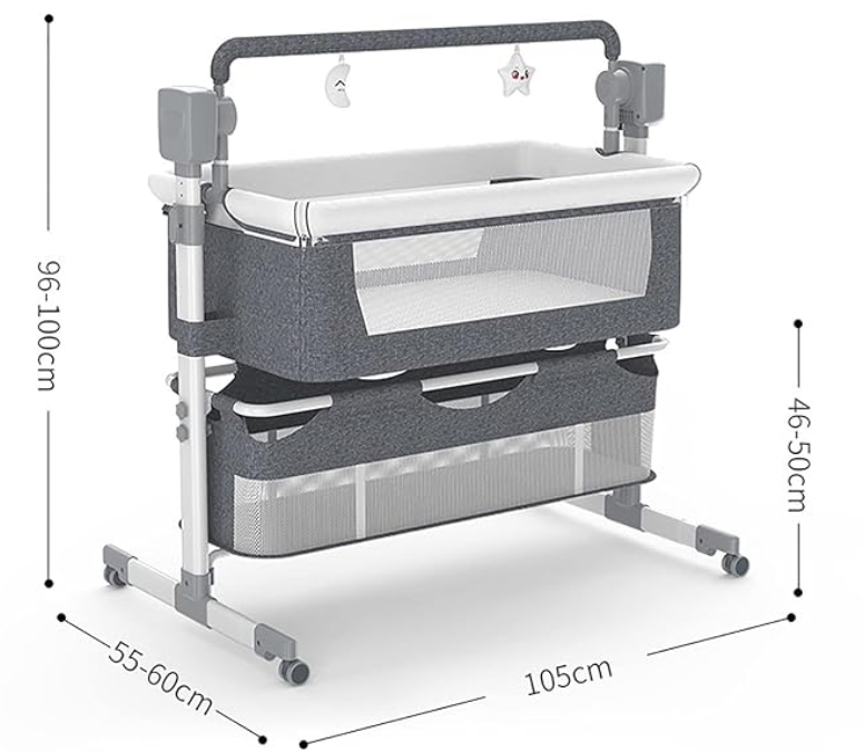 Lit Bébé Cododo Berceau avec balancelle , bluetooth Hauteur Réglable Confortable Avec Rangement Plusieurs Coloris